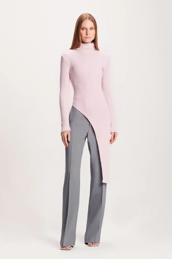 Calça de alfaiataria em crepe com shape soltinho e modelagem reta. Possui cintura alta e cós com passantes. Bolsos na frente e atrás. Ajuste de pregas e fechamento com zíper, botão e colchetes de gancho.